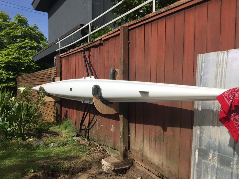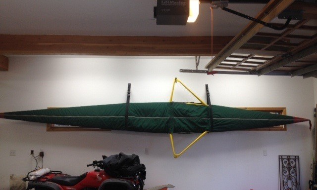 If the boat is stored outside, it is best to keep it upside down on slings or supports to keep dirt and debris out of the cockpit. For the best longevity, keep the shell and oars out of the sun, or at least cover them. Sunbrella brand canvas provides protection from harmful UV radiation. We suggest that you choose a light colored canvas for the cover; dark colors absorb too much heat and can cause the shell to warp. Burnham Boat Slings makes custom covers for Maas Shells.
