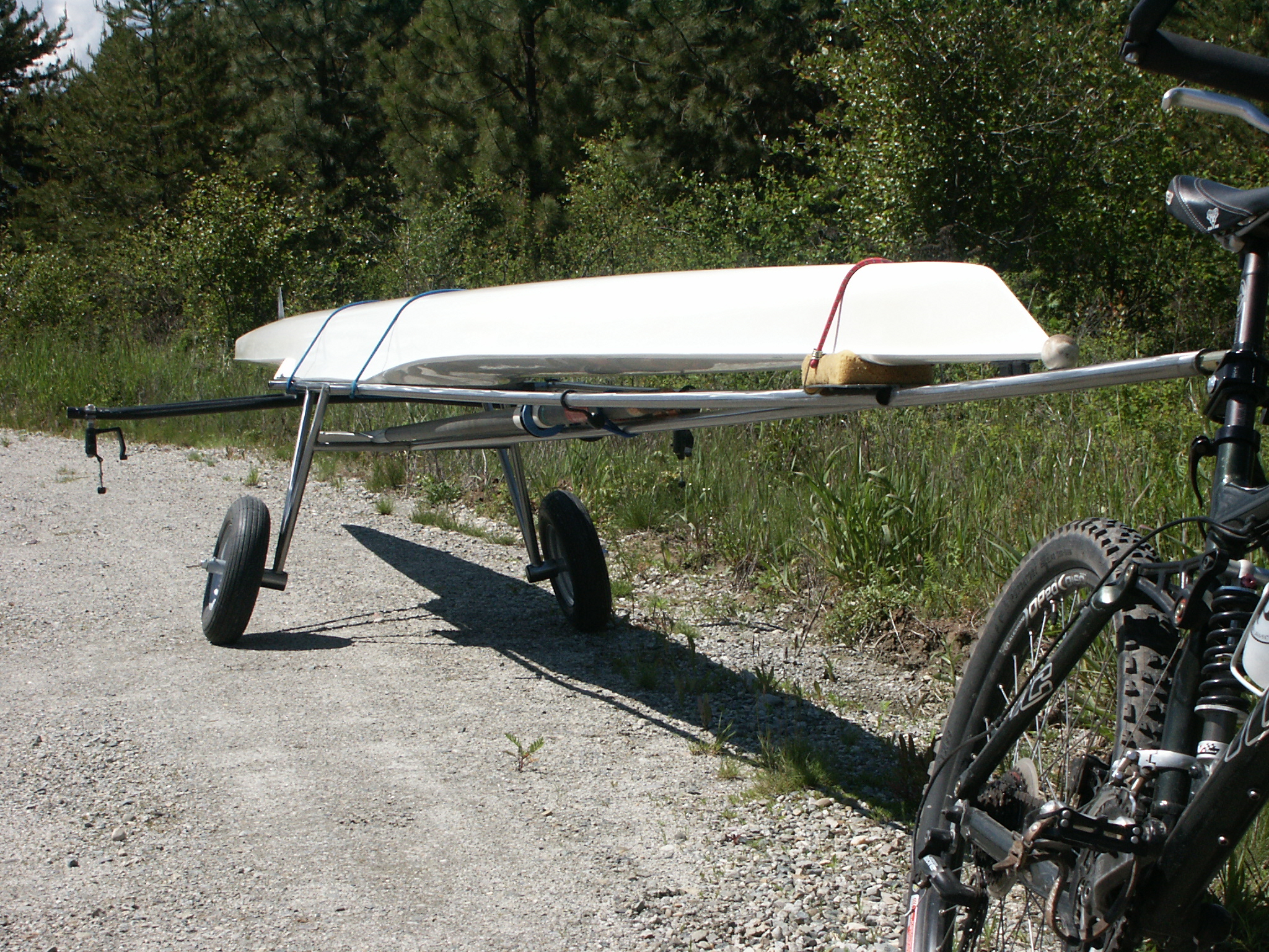 Since these boats are quite long, there’s always some question as to what’s legal. Laws and attitudes vary from state to state: the information given here is from California. If you live in another state or will be transporting your shell through another state, check the applicable local laws with the State Police.